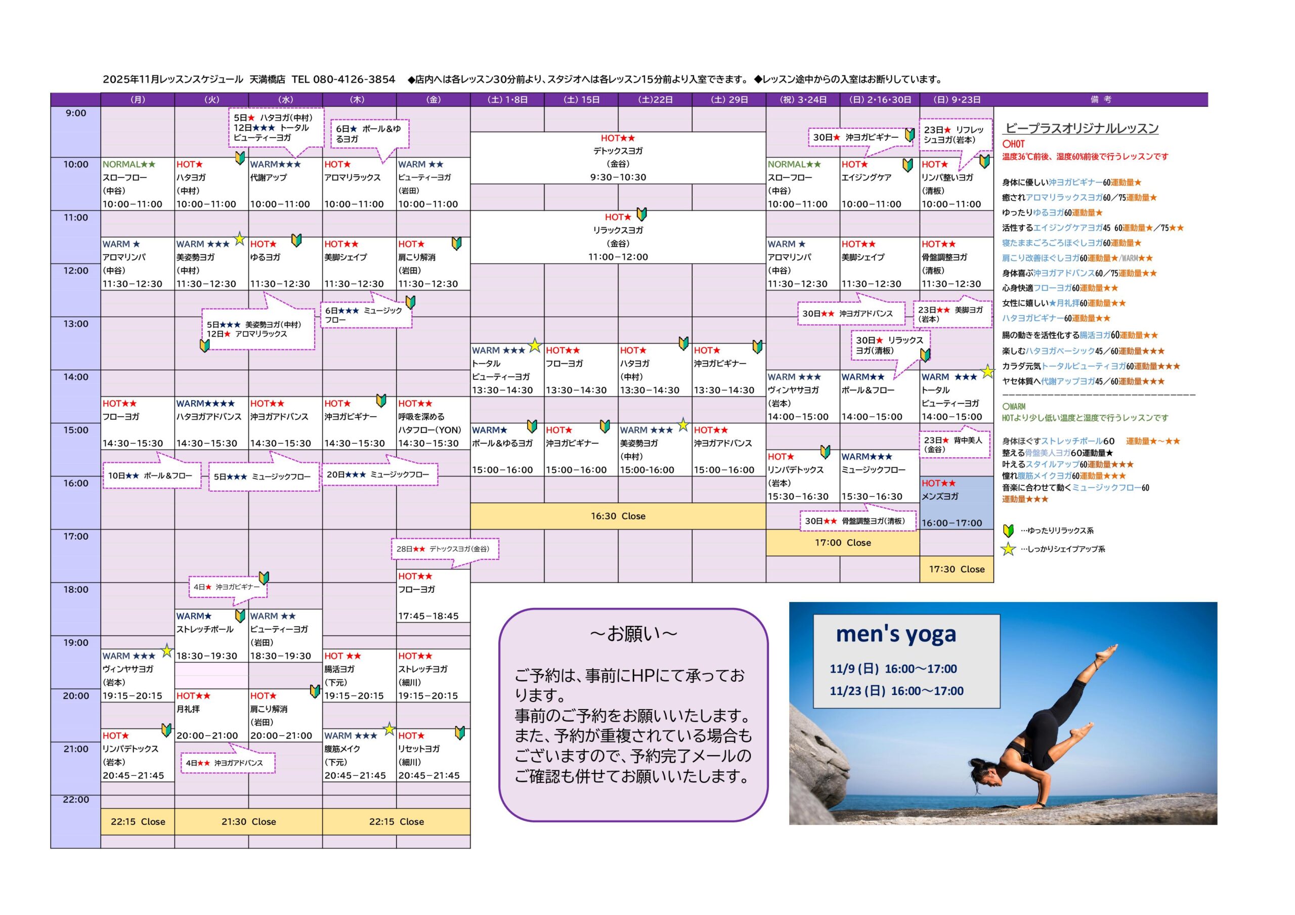 ★★★ よりアクティブに動くレッスンです。ヨガレッスンでは、バリエーションポーズも加わります。たくさん体を動かしたい方におすすめです。