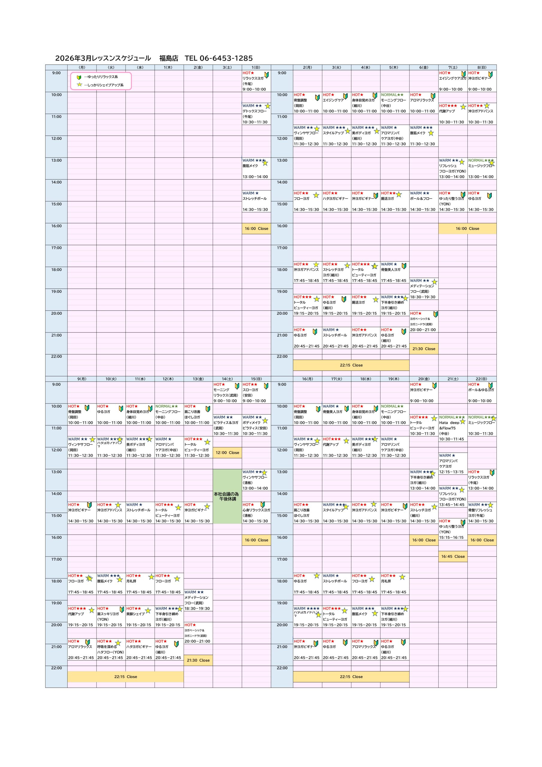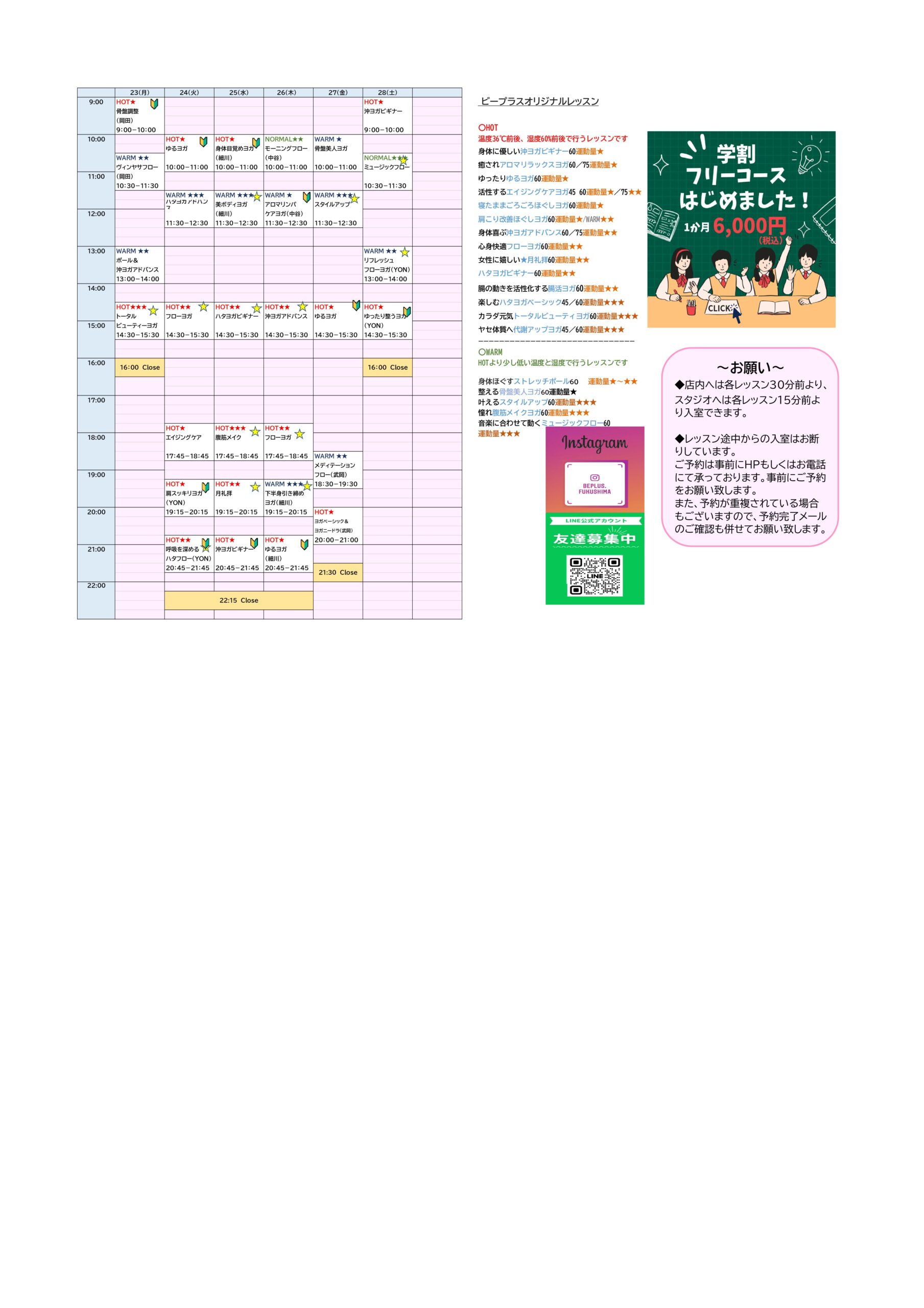 ★★ 連続的にポーズを行う動きが加わります。快適な運動量のレッスンです。