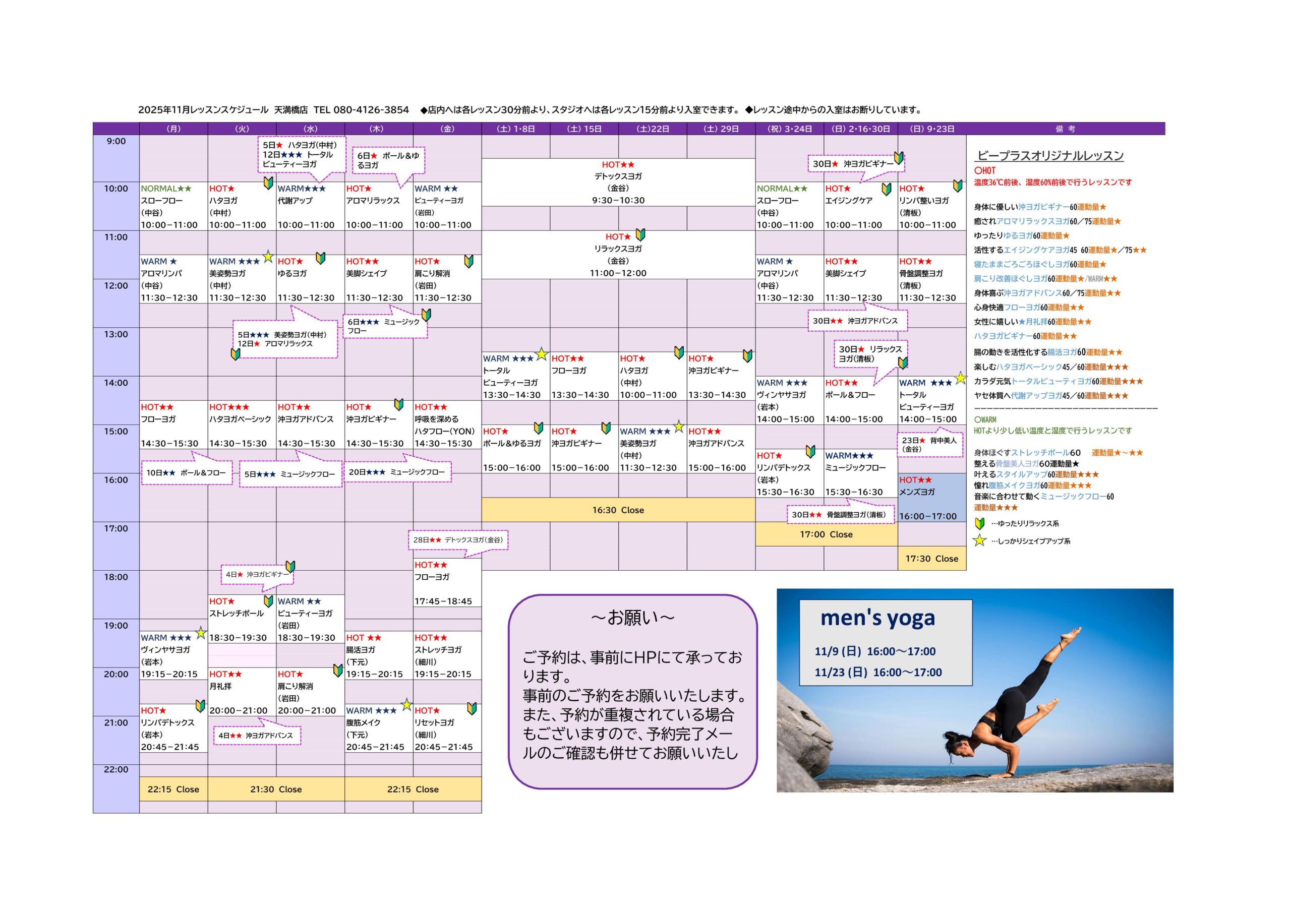 ★★★ よりアクティブに動くレッスンです。ヨガレッスンでは、バリエーションポーズも加わります。たくさん体を動かしたい方におすすめです。