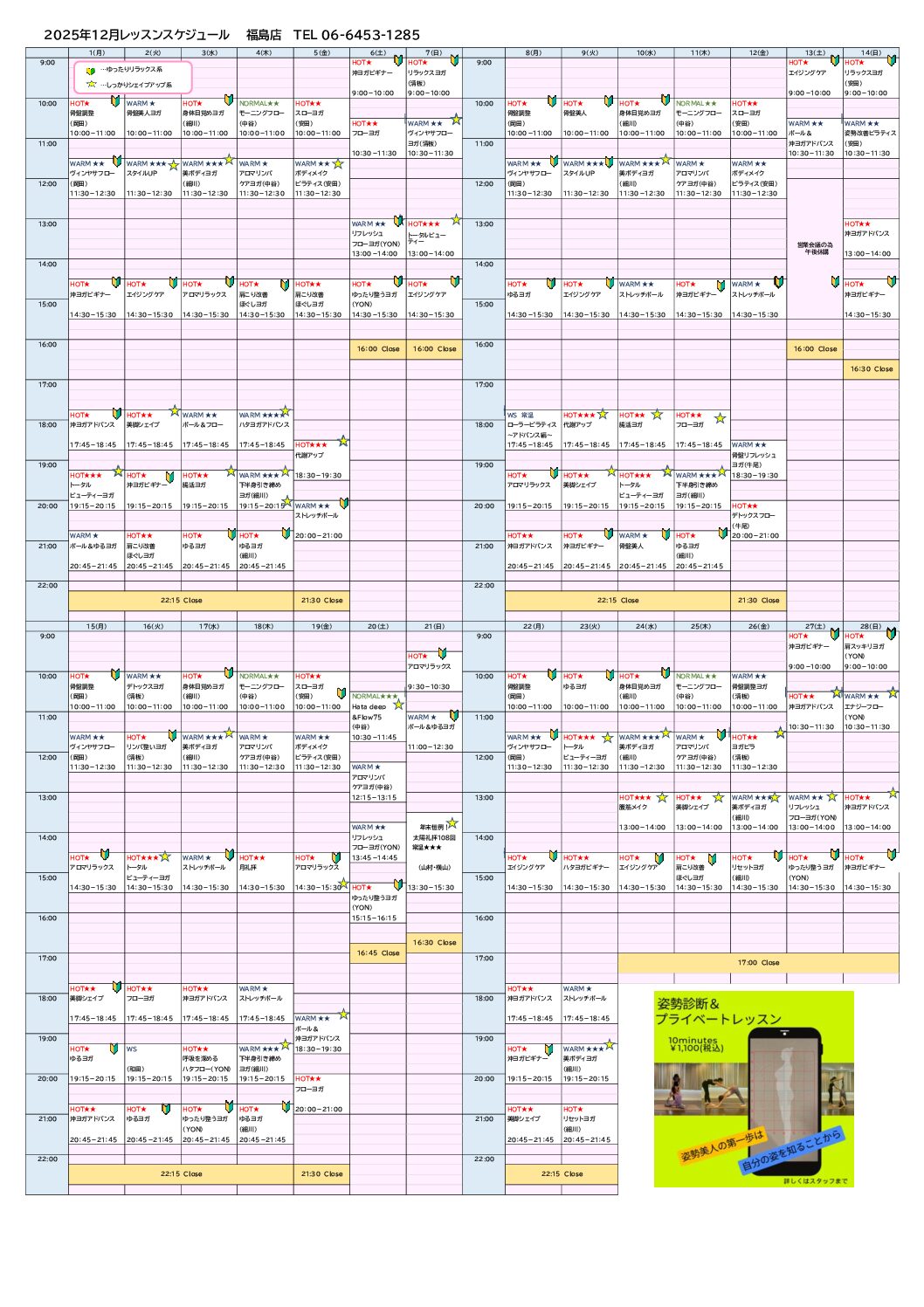筋力を使う立位ポーズが多いレッスンです。血行を促進させ、内側から脂肪燃焼を促していきます。